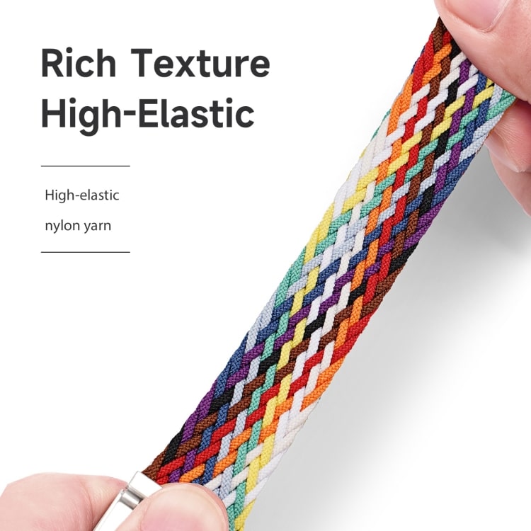 De strålende regnbuefarver tilføjer et unikt og livligt touch til dit ur, hvilket gør det ideelt til enhver situation – fra professionelle møder til afslappede sammenkomster og sportsaktiviteter. Det vævede nylonmateriale sikrer en behagelig og sikker pasform.